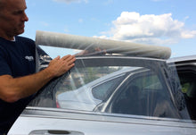 Protect vehicle interiors fast with GT Tools® WindowGuard™ Clear Film Crash Wrap. This premium, self-adhesive crash wrap provides a temporary, weatherproof barrier over broken or missing glass, allowing vehicles to be safely parked or temporarily driven until permanent repairs are made. The crystal-clear film preserves visibility and safeguards the interior from rain, dust, debris, and theft, making it essential for auto glass professionals and body shops.